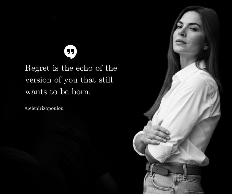 That ache? It’s data. Every regret is your nervous system drawing a map. Here’s where your voice should have been. Here’s where your courage goes. Here’s the boundary you needed but didn’t know to build. Here’s the version of yourself that’s still available to you, if you’re willing to reach for her.